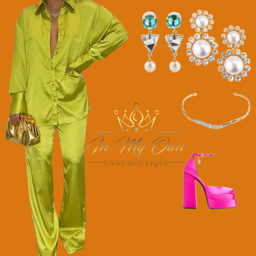 Satin 2pc set that’s meant to be oversized over up in sizing